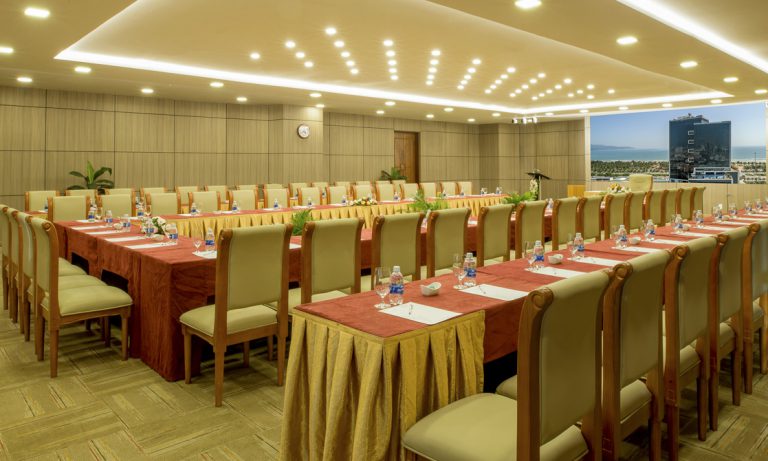 Phòng họp phù hợp với các cuộc hội họp vừa và lớn, các bữa tiệc trang trọng, được trang bị đầy đủ thiết bị nghe nhìn hiện đại nhất.